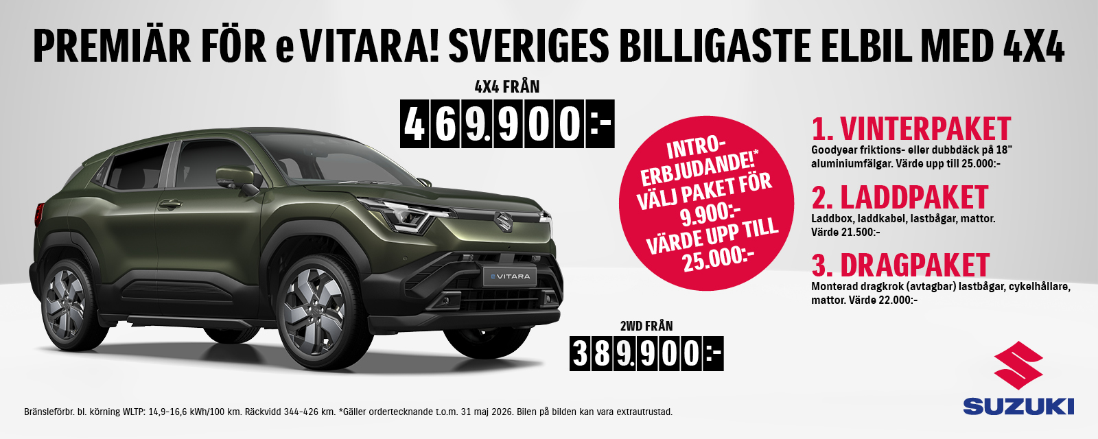 Bland annat en tillbehörskampanj vid köp av nya eVitara, vinterhjul ingår vid köp av S-Cross med mera…